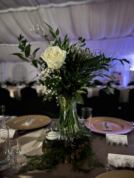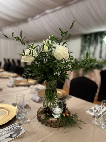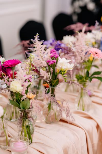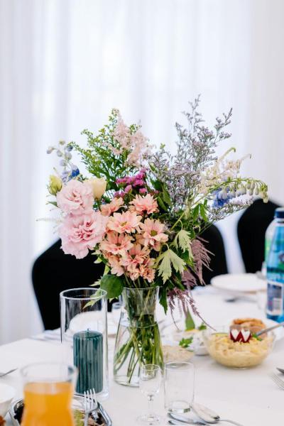 Dekoracje kwiatowe Oferujemy dekoracje kwiatowe, które dodają każdej uroczystości wyjątkowego uroku i elegancji. Tworzymy kompozycje dopasowane do charakteru wydarzenia – od bukietów i aranżacji stołów po dekoracje wejść i przestrzeni plenerowych.
