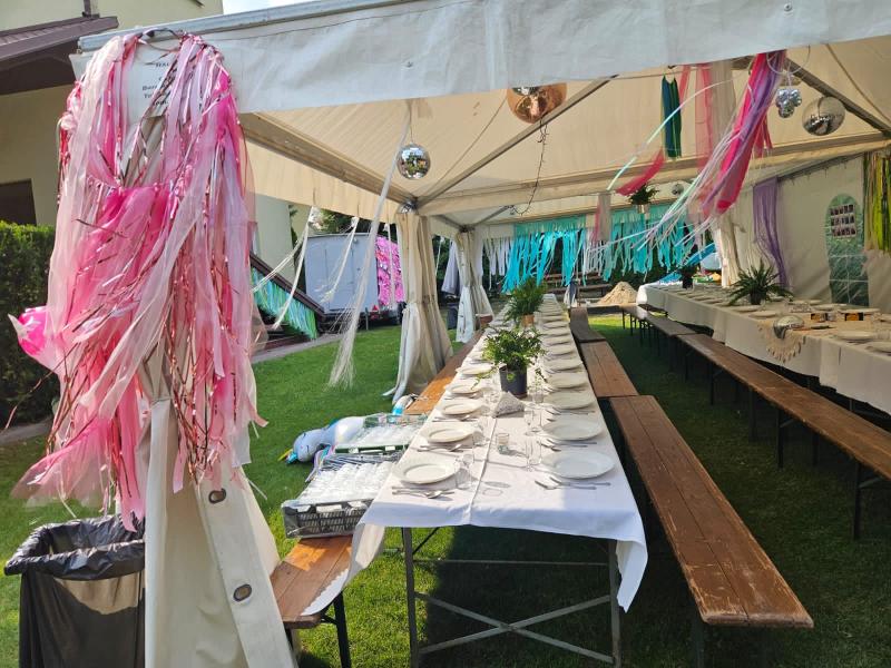 Dekoracje namiotów i sal Oferujemy dekoracje namiotów i sal, które sprawią, że każda Twoja uroczystość będzie wyjątkowa i niezapomniana. Dopasowujemy aranżacje do stylu wydarzenia, tworząc eleganckie i spójne wnętrza, które zachwycą gości.