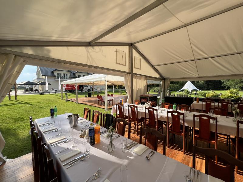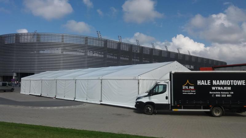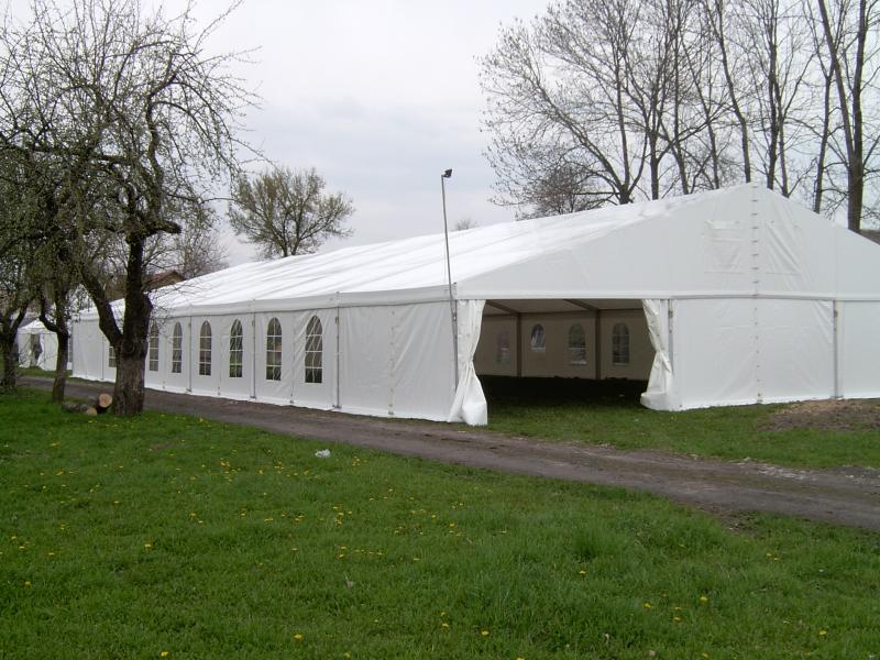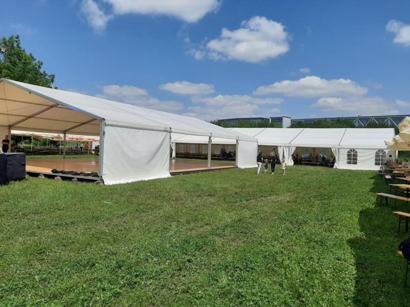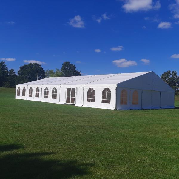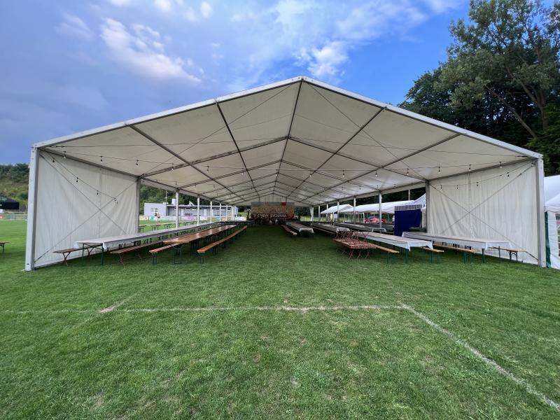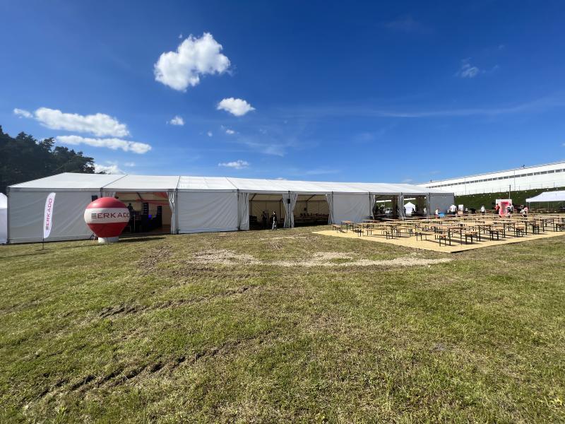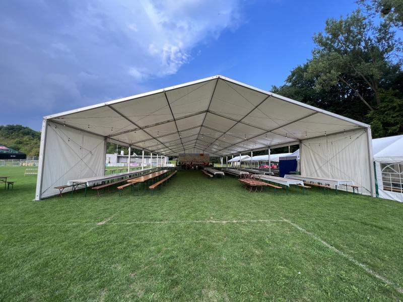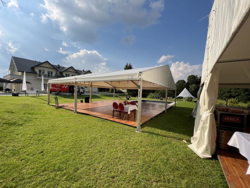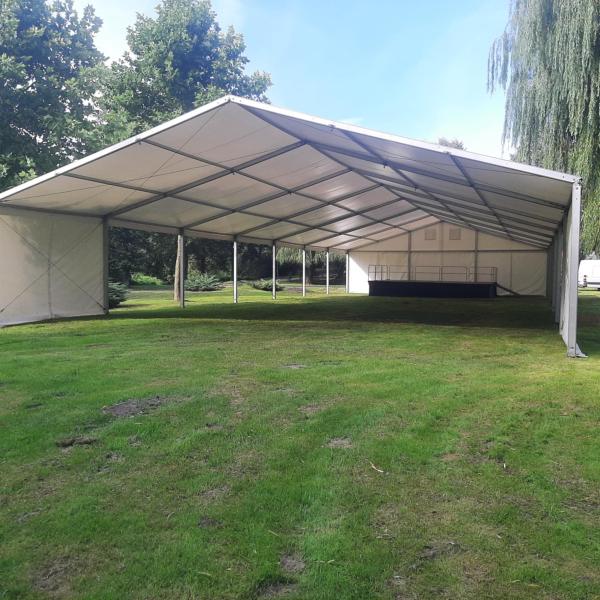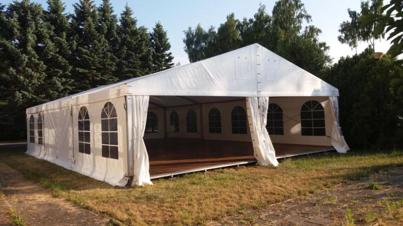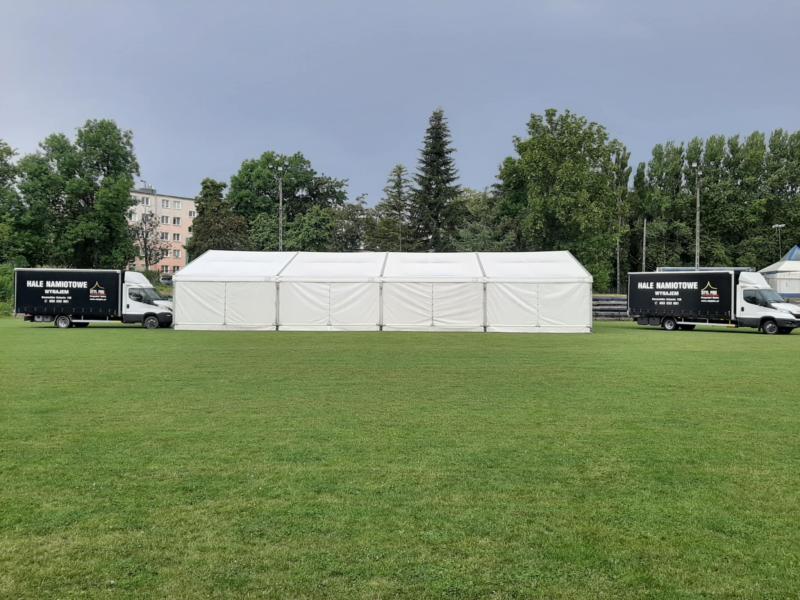 Oferujemy hale namiotowe o szerokości 10, 15 i 20 metrów, z wysokością ścian bocznych 2,5 m lub 3,5 m. Ich długość jest dowolna – modułowa konstrukcja pozwala na rozbudowę co 5 metrów, dzięki czemu każdą halę można idealnie dopasować do potrzeb wydarzenia. Poniżej prezentujemy przykładowe realizacje naszych hal namiotowych.