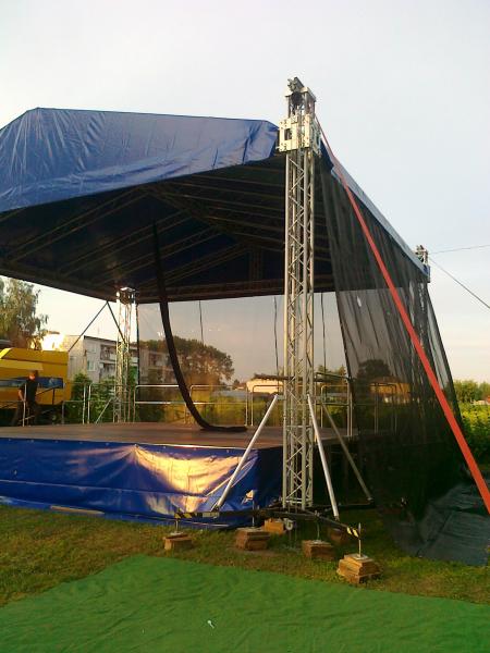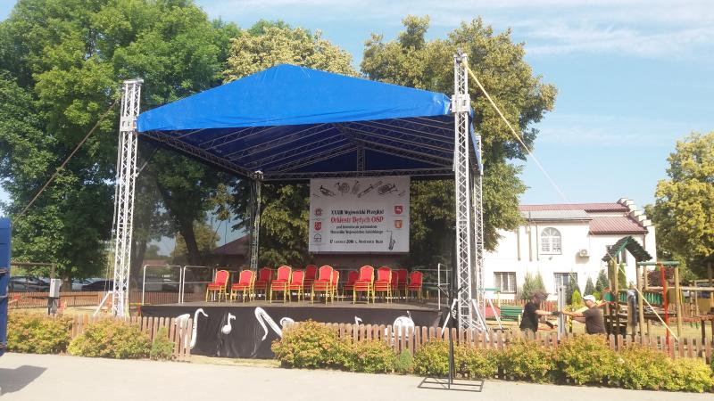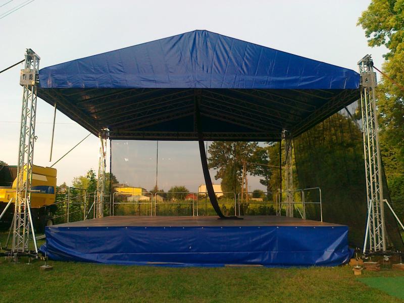 Scena 10x10m Nasza scena 10x10 m to stabilna, bezpieczna konstrukcja idealna na koncerty, eventy i imprezy plenerowe. Wyposażona w zadaszenie i możliwość rozbudowy o oświetlenie oraz nagłośnienie, zapewnia profesjonalne warunki dla każdego wydarzenia.